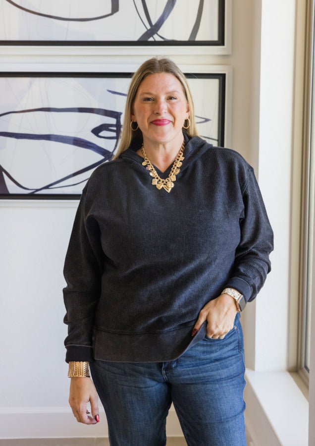Meet your new go-to for cozy, elevated style — the Luxury Corded Crew Hoodie. Crafted from premium 100% cotton corded fabric, this hoodie delivers the same soft yet structured feel you love from our best-selling corded pieces. Custom dyed and snow washed for a vintage, lived-in look, it features a relaxed fit, front kangaroo pocket, and adjustable drawstring hood. Pair it with the Essential Luxury Corded Jogger for the ultimate luxe lounge set that’s perfect for travel days, errands, or casual weekends.
