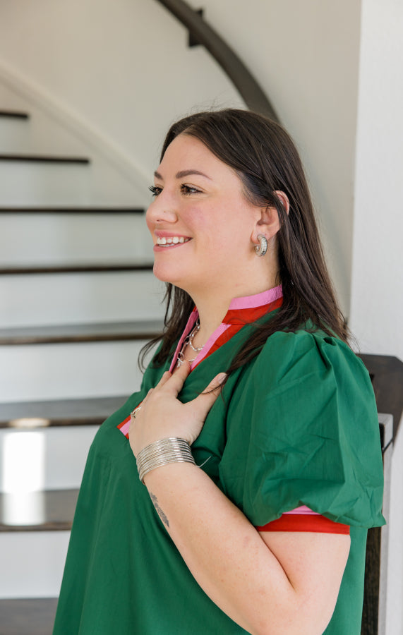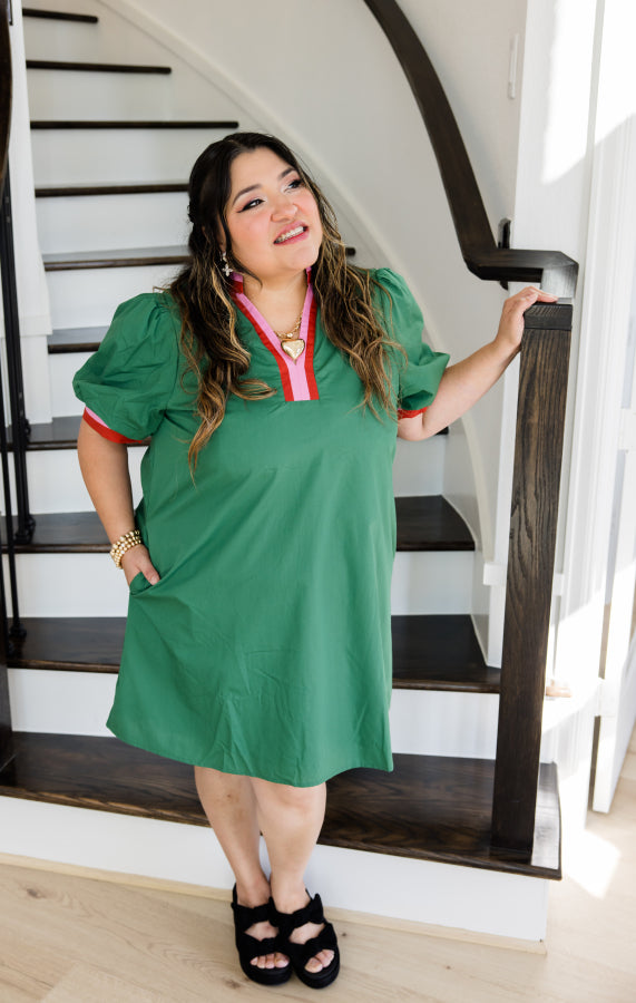 Simple, sweet, and effortlessly wearable, the Autumn Stripe Mini Dress is the perfect everyday throw-on for the season. Designed with soft short sleeves and a relaxed silhouette, this pullover mini dress features a bold multicolor accent band that adds the perfect pop of personality. Side pockets and full lining keep it functional and comfortable, making it an easy go-to for school pickups, errands, workdays, and weekend fun.