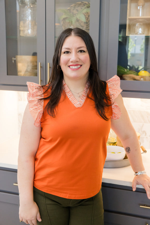 The Dakota Top by Washco Apparel brings bold color and effortless confidence to your wardrobe. Designed in a vibrant orange hue with sleek stripes, its flattering v-neckline and tailored fit make it both polished and comfortable. Perfect for adding a pop of color to your everyday look or dressing up for a fun occasion, this versatile piece makes a stylish statement wherever you go.
