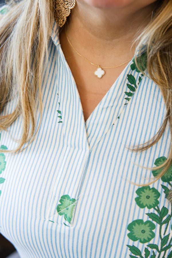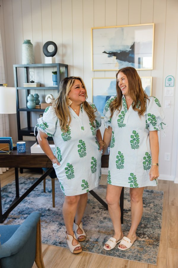 The Rowan Stripe Mini Dress is made for days when you want something fun, flattering, and easy all at once. The mix of stripes and florals gives this dress its personality, while the collared V-neck keeps it feeling polished. Puff sleeves with tie cuffs add charm, and the adjustable drawstring at the back waist lets you customize the fit. Finished with pockets (because always), this is a grab-and-go piece you’ll reach for on repeat.