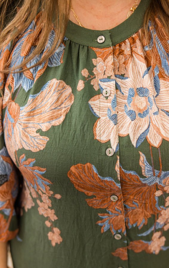 The Autumn Petals Midi Dress is where timeless charm meets effortless comfort. Featuring a soft floral print, button-front closure, and adjustable drawstring waist, this dress flatters every figure while keeping things breezy and feminine. Elasticated sleeves and side pockets make it both stylish and practical—perfect for workdays, brunch dates, or fall outings.