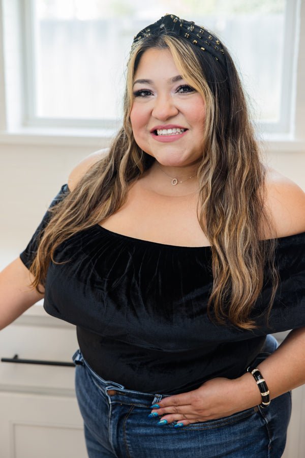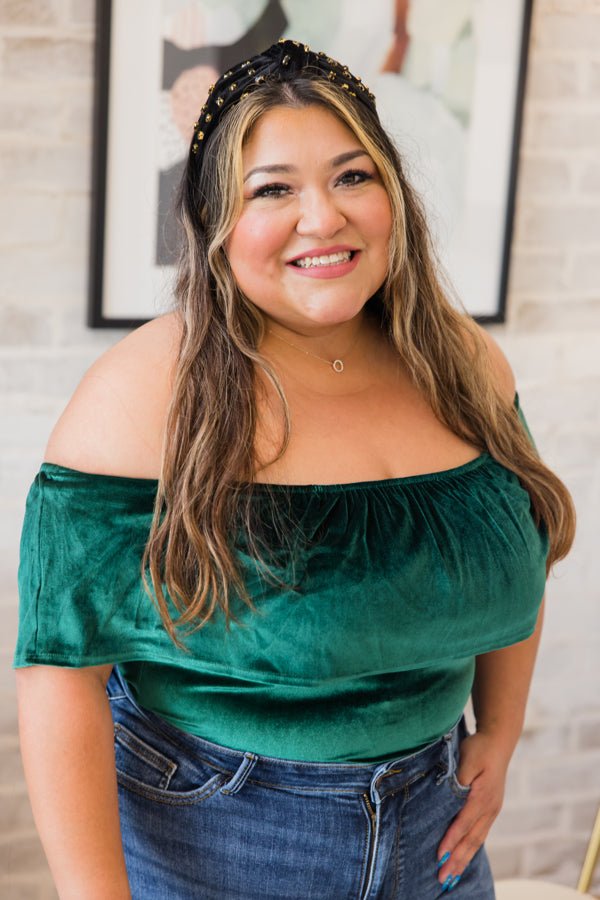 Fall in love with this Velvet Allure Bodysuit.  Made with luxurious velvet fabric, it's perfect for spicing up your look in the colder months - don't let the chill cramp your style game! It's an off-the-shoulder bodysuit that will give you that little edge of sass that you need.