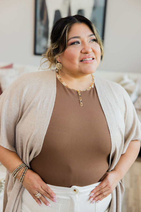 Stay on top of your style game in this Destiny Ribbed Bodysuit now in Chocolate! Crafted with a ribbed knit fabric and a slim-fitting silhouette, this bodysuit pairs perfectly with your favorite bottoms! The tank and snap closure make it effortlessly chic and easy to rock, no matter the occasion. Get ready to make a statement!