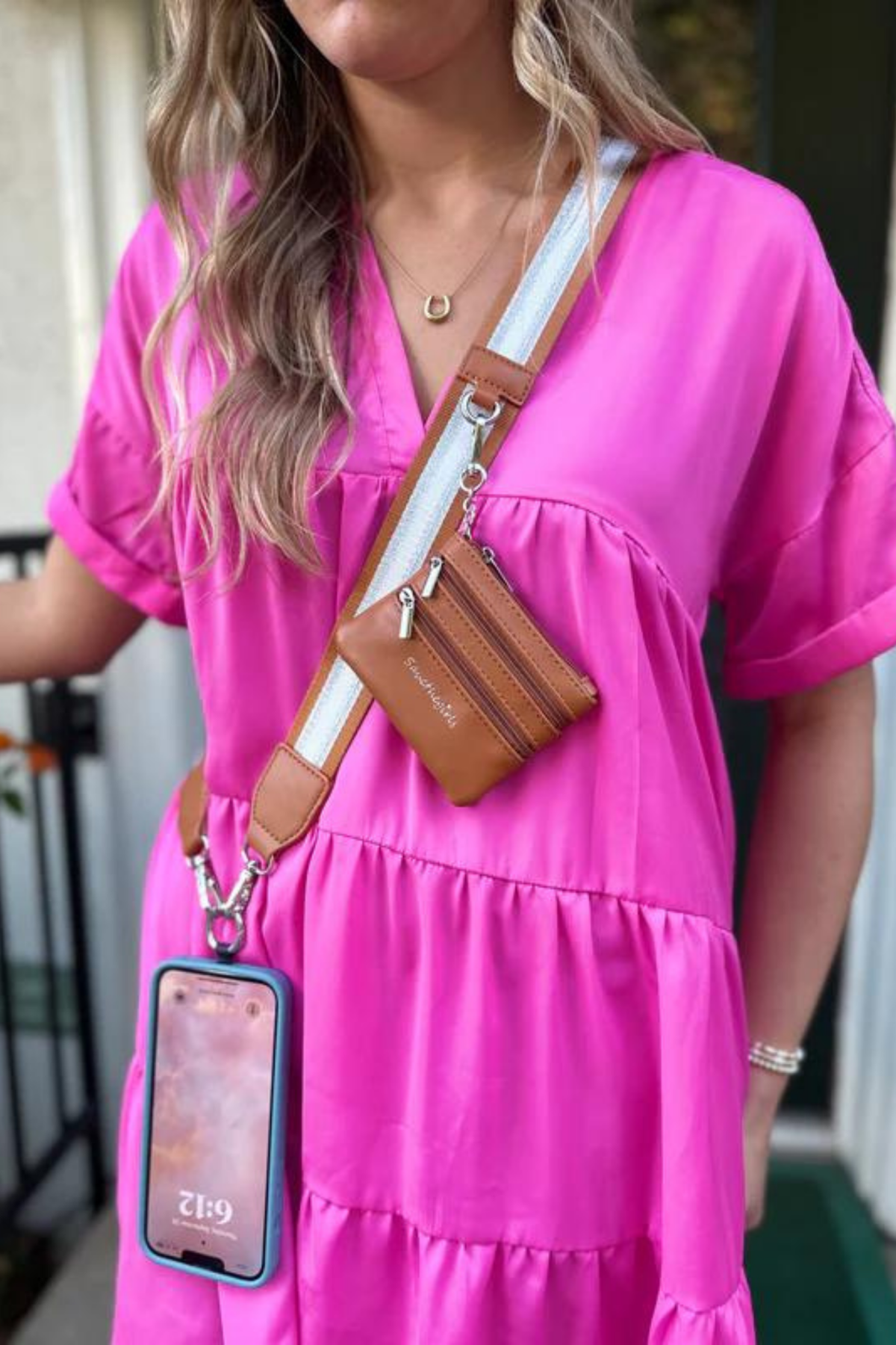 You can wear your phone hanging at the end of the shoulder strap, or switch things up by removing the separate wristlet strap section and carrying your phone on your wrist. Plus, our cute three zippered pouch adds even more convenience by safely and securely holding all of your small essential items - from cash to credit cards and change.