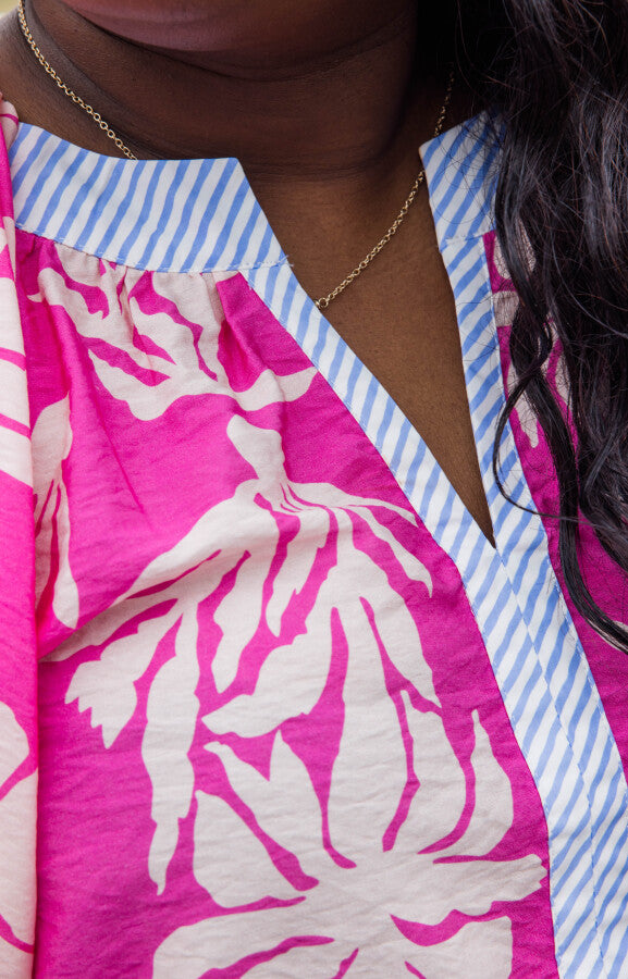 • Bold pink tropical floral print