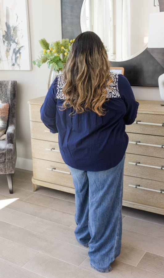 Want a top that is perfect for your next tailgate, but you can also wear year round? The Jane top is perfect for that! This top is a lightweight fabric with embroidery on the front and back and wooden buttons down the front. Pair with jeans or white bottoms for any occasion!