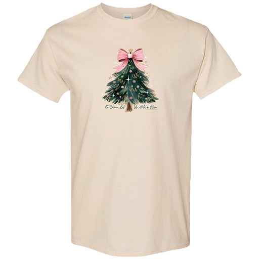 Spread the reason for the season with the Oh Come Let Us Adore Him Tee from Southern Couture. This soft-touch holiday top features a charming Christmas tree accented with a pretty pink bow — a perfect mix of festive and feminine. Crafted in a premium cotton blend, it’s cozy enough for chilly mornings and stylish enough for all your Christmas celebrations.